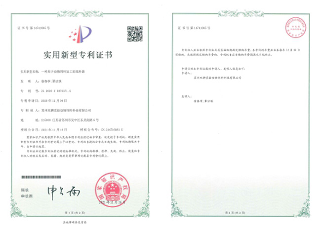 honor 關(guān)于我們 公司簡介 資質(zhì)證書 合作客戶 專利證書 ISO9001 蘇州市實驗動物協(xié)會l理事單位 飼料生產(chǎn)許可證 蘇州市科學(xué)技術(shù)進步獎 蘇州市科學(xué)技術(shù)進步獎 < 1234 >